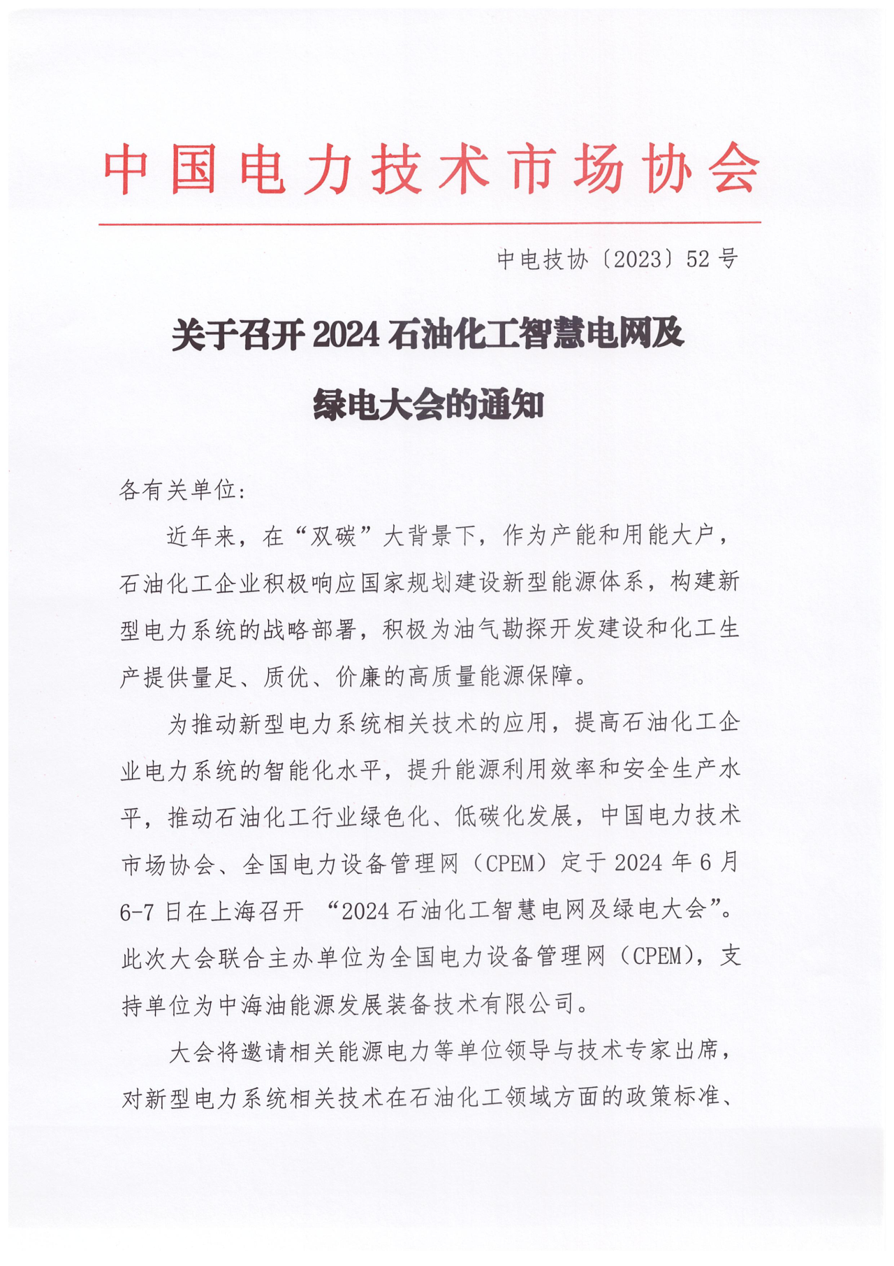 (一)大會名稱:2024石油化工智慧電網及綠電大會