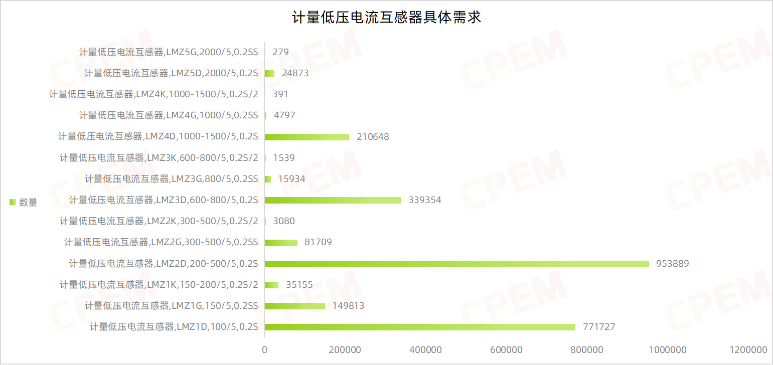 計量低壓電流互感器招標(biāo)項目單位共計21個,其國國網(wǎng)山東省電力公司、國網(wǎng)江蘇省電力有限公司、國網(wǎng)河北省電力有限公司三個項目單位需求數(shù)量分列前三,計量低壓電流互感器,LMZ2D,200-500/5,0.2S該款產(chǎn)品的需求量最大,達(dá)953889臺。