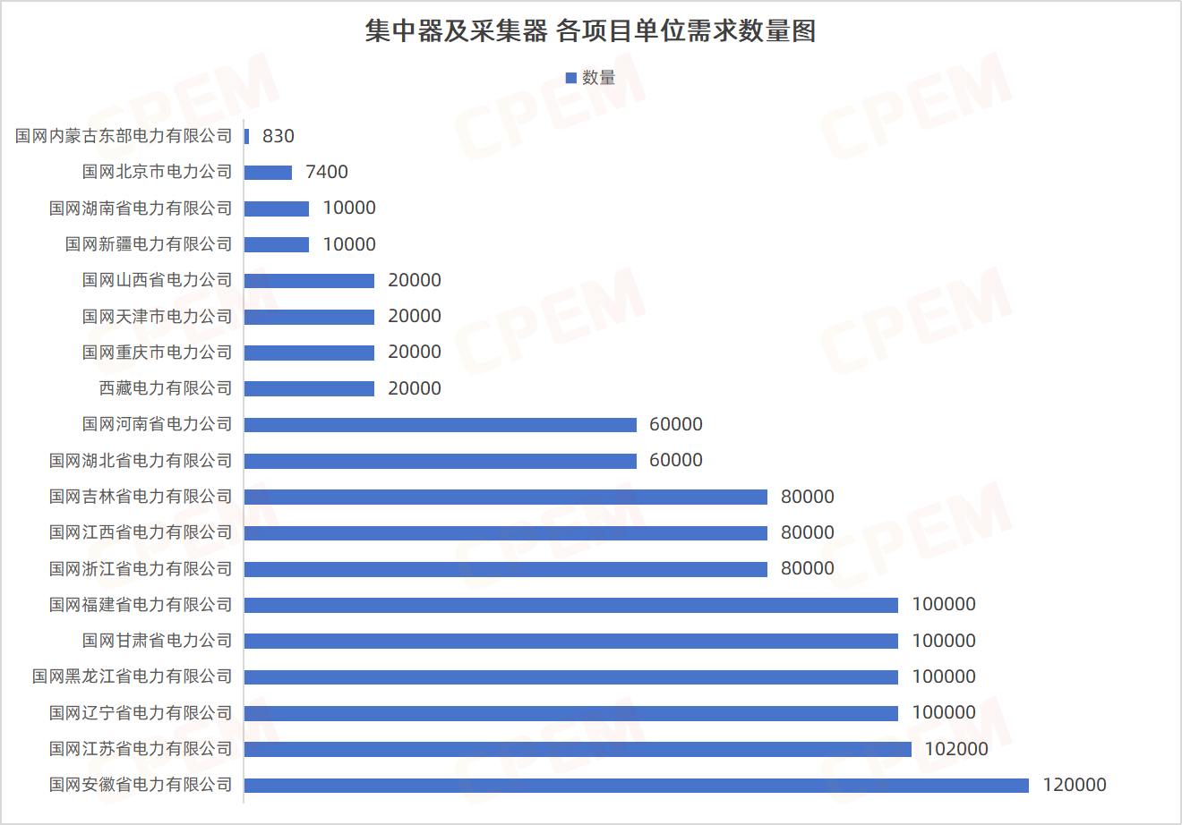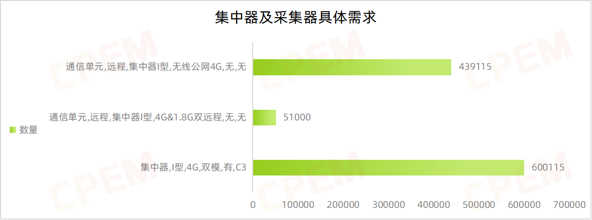集中器及采集器招標(biāo)項目單位共計19個,其中國網(wǎng)安徽省電力有限公司需求數(shù)量最多,國網(wǎng)江蘇省電力有限公司、國網(wǎng)遼寧省電力有限公司、國網(wǎng)黑龍江省電力有限公司、國網(wǎng)甘肅省電力公司、國網(wǎng)福建省電力有限公司緊隨其后,集中器,I型,4G,雙模,有,C3該款產(chǎn)品的需求量最大,達(dá)600115臺。
