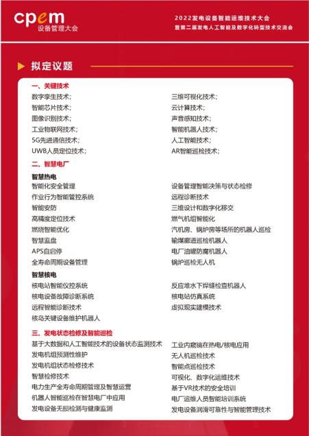2022第三屆電力人工智能大會暨2022電力行業數字化轉型大會”將于2022年11月3-4日江蘇蘇州舉辦。大會由中國電工技術學會人工智能與電氣應用專業委員會、國家能源智能電網(上海)研發中心、CPEM全國電力設備管理網、國網能源研究院有限公司《中國電力》雜志社、人工智能生態產業協作平臺等單位聯合主辦,上海共燊信息科技有限公司無錫分公司、無錫共燊會展服務有限公司承辦。
