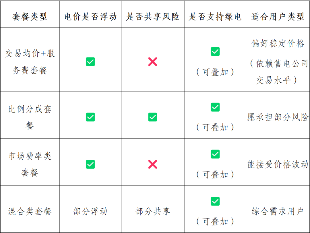 綠電套餐,由原先特定為交易均價(jià)+固定服務(wù)費(fèi)的模式,升級(jí)為任何類型的套餐均可配置為“綠色電力”模式。