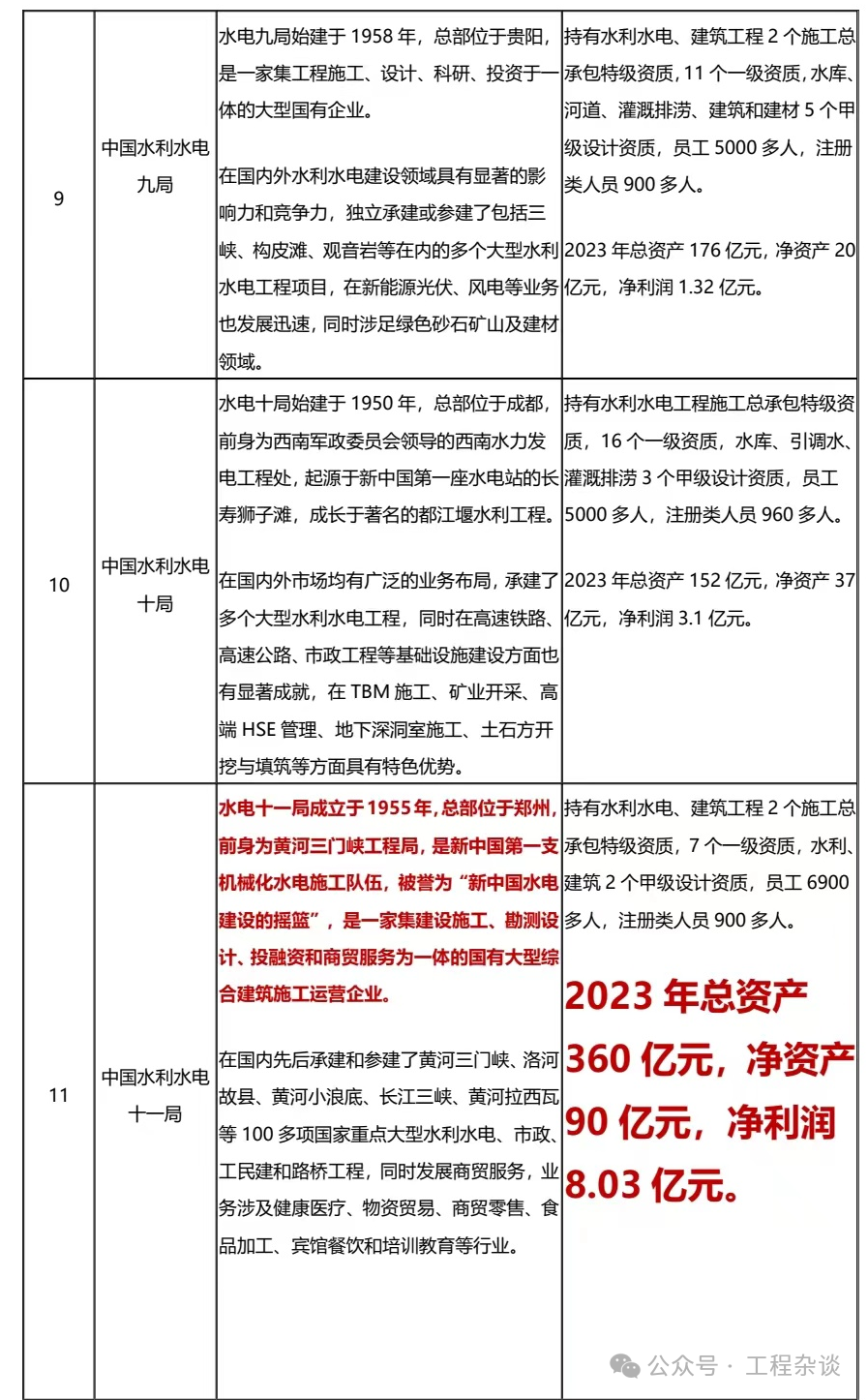 下面具體來看看水電1局到16局的綜合實(shí)力對(duì)比: