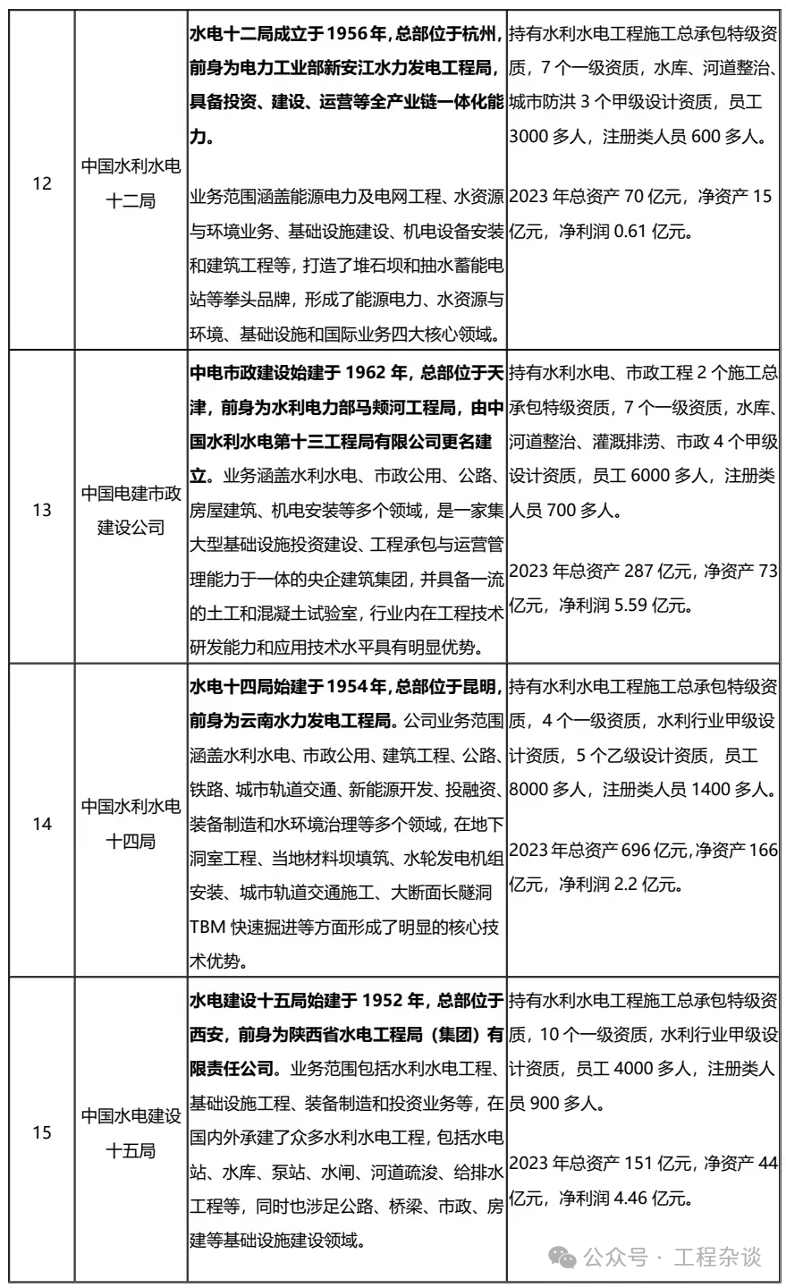 三、各大設(shè)計(jì)院(以水利水電業(yè)務(wù)為主,也會(huì)做EPC總承包業(yè)務(wù))1、中國(guó)電建城市院2、中國(guó)電建華東院(據(jù)說是全國(guó)設(shè)計(jì)院里面排名第一,名氣很大)3、中國(guó)電建西北院4、中國(guó)電建中南院5、中國(guó)電建成都院6、中國(guó)電建昆明院7、中國(guó)電建貴陽院8、中國(guó)電建北京院9、中國(guó)電建福建院10、中國(guó)電建江西院11、中國(guó)電建青海院12、中國(guó)電建華中院13、中國(guó)電建貴州院14、中國(guó)電建吉林院15、中國(guó)電建河北院